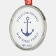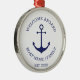 Custom Boat name or Family name, Welcome Aboard, nautical anchor navy blue and white Christmas metal Ornament.