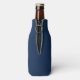 Bottle cooler featuring a white, elegant anchor and rope emblem with customisable text "welcome aboard" and your boat name on a dark blue background.