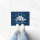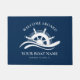 Welcome guests aboard your boat with this classic navy blue and white nautical doormat featuring a stylised ship’s wheel and ocean wave, and templates for the custom boat name and ship's registry. Check out the collection for matching products. If you would like other colorways or more matching products, please contact me through Zazzle Chat.