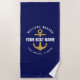 Make a splash this summer with this personalised nautical beach towel! Featuring a classic anchor design and your boat's name, this large, absorbent towel is perfect for sunny days at the beach, lake, or pool. Personalise it with your boat's name and location.