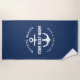 Welcome Aboard Boat Navy Blue Nautical Anchor Beach Towel