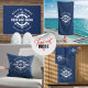 Welcome Aboard Nautical Boat Name Navy Blue Cushion