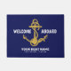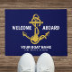 Welcome Aboard Nautical Navy Blue Gold Boat Name Doormat