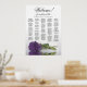This gorgeous wedding seating chart features a photo of a long-stemmed amethyst purple coloured rose lying on its side reflecting in a pool of water with waves and ripples. The main title reads "Welcome!" with subtitle reading "please find your table" in elegant lacy script calligraphy. There is space for the up to 200 names with the names of the couple and wedding date below. Wonderful way to help your guests find their tables while making your reception more beautiful.