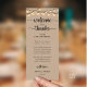 Make a heartfelt first impression at your wedding reception with this sophisticated "Welcome & Thanks" place card - designed to rest beautifully on each guest’s plate, in rustic string lights, brown kraft theme. Featuring graceful script typography and a timeless layout, this elegant card warmly greets your loved ones while expressing gratitude for sharing your special day. Ideal as a dual-purpose place card & welcome note—combine sentiment and function without cluttering your tables-cape. Designed for couples who value refined details, this card complements modern and luxe wedding themes. Print on premium card stock for a luxurious finish that guests will cherish (or even keep as a sweet keepsake!). Because love is best served with gratitude.