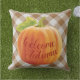 Welcome Autumn Harvest Pumpkin On Gingham Cushion