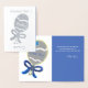 Beautiful Welcome Baby Boy Greeting Card with front of card having gold sleek foil decorative image. Inside of card has full colour elegant silver baby rattle outlined in light yellow with a blue star, look of sprinkles and pretty blue bow with the look of beads. A special message is written inside right side of card with a blue background. Leave wording as is, or delete and insert your own special message. Can be edited for multiples by changing outside and inside text to the word Boys. Back of card has Love written in gold foil. Original Graphic Artwork and Verse design by TamiraZDesigns.