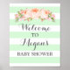 Welcome Baby Shower Sign Mint Flowers Stripes