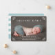 Cute little white dots and corner elements frame your baby's photo in this darling birth announcement, perfect for a baby boy or girl. The back of the card has white stripes and a custom colour background. Shown is a light aqua grey, but the colour can be changed to any colour you'd like. The text "Welcome Baby" can be moved or resized if needed. The template image must be replaced with a photo of your own prior to purchasing.