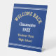 It is sturdy than I expected. Was worried about the material being flimsy but it is not. It is printed on some sort of plastic material. It should serve well at our wedding as long as wind isn’t too bad. Otherwise we will put some paper weights behind it and should be fine.