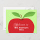 This simple and bold postcard has a large apple graphic that reads: Welcome to Mrs. Anderson's Class. The text is customisable to fit your needs.