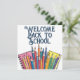 Cheerful "Welcome Back to School" design featuring colourful pencils and notebooks – perfect for back-to-school greetings, classroom decor, flyers, posters, or social media posts in educational settings.