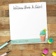 If you are a teacher or a parent preparing for back to school gift ideas for the teacher, here's a fun idea. This note pad features a yellow flowering potted cactus with the "Welcome Back to School" message at the top and a template text for a name. Personalise the top message and name, remove any text or click customise to select a typeface style, size, and colour you like.