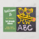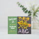 This is a great welcome back to school card with a chalkboard background kids drawing in abc chalk letters. The best part here is that you can customise this by adding a teacher's name and your own words.