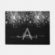 A stylish black background with faux silver glitter dust. Personalise and add your family name and monogram letter, initial. White and grey coloured letters. The name is written with a trendy hand lettered script with swashes. To keep the swashes only delete the sample name, leave the spaces or emoji's in front and after the name.