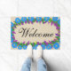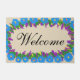 Welcome spring and dress up your entryway with blue floral Welcome door mats. Pretty blue flowers with yellow, purple and green accents. Shown on a beige background. Original Graphic Artwork design by TamiraZDesigns. Visit my store for more original items: www.zazzle.com/tamirazdesigns*