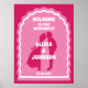 Welcome Bold Pink Magenta Retro Wavy Arch Wedding Poster