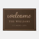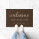 Personalised family name door mat featuring elegant calligraphy script and modern design.