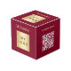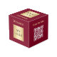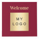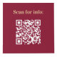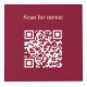 For hotel rooms, restaurant tables, rental properties. Personalise and add your business logo, and space for two QR codes. A burgundy background, yellow text.
