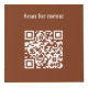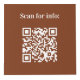 For hotel rooms, restaurant tables, rental properties. Personalise and add your business logo, and space for 4 QR codes. Brown earth coloured background, white text.