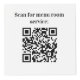 For hotel rooms, restaurant tables, rental properties. Personalise and add your business logo, and space for 4 QR codes. White background, black text. You can add your brand colour in the design tool.