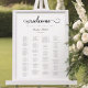 This minimal black and white alphabetical seating chart is perfect for an elegant and classic wedding. You can change the background colour. Just click the customise further link, shown under the text personalisation area on the right, and choose your custom colour background. This vertical sign can be used to organise your guests alphabetically or by table number by changing the headings. This wedding poster includes enough room for up to about 100 guests. Make room for more (or less) guests by clicking the "customise" button and decrease or increase the size of the font.