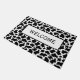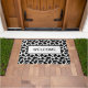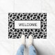 Doormat shown with a black and white cute country cow print design.