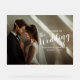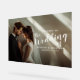 A stylish and elegant wedding sign design with the words "the wedding of" in a beautiful white script font. It includes space for a custom photo, names, and the wedding date in a modern white font. A perfect way to add a personal touch to your special day!