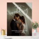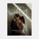 A stylish and elegant wedding sign design with the words "wedding" in a beautiful white script font. It includes space for a custom photo, names, and the wedding date in a modern white font. A perfect way to add a personal touch to your special day!