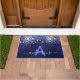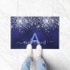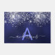 A stylish navy blue background with faux silver glitter dust. The blue colour is uneven. Personalise and add your family name and monogram letter, initial. White and blue coloured letters. The name is written with a trendy hand lettered script with swashes. To keep the swashes only delete the sample name, leave the spaces or emoji's in front and after the name.