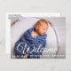 WELCOME, fun script baby announcement postcard