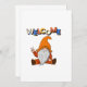 Gnome sitting with the peace sign and colourful Welcome message card for any occasion and when you want to send something unique.