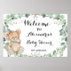 Welcome Greenery Bear Gold Baby Shower Poster