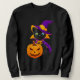 Welcome Happy Hat Cat Halloween 2023 Devil Face Pu Sweatshirt