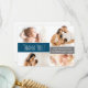 Customise the card by adding beautiful photos of your baby and family, allowing your loved ones to cherish these precious memories as your baby grows. Include the baby's name, birth date, parents' names, and a heartfelt message to express your gratitude. The modern typography on dark blue and grey blocks adds a stylish and contemporary touch to the design.