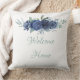 Welcome Home Blue Rose Throw Pillow - Are you shopping for a cute throw pillow? This throw pillow has blue roses and the words, "Welcome home." Like the blue roses and greenery but not the words? Don't worry, you can personalise it and change the words to something else you love instead!