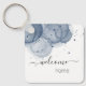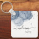 Fun splash design graces this welcome home keychain, great gift for real estate agent to give client.
