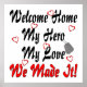 Welcome home your significant other from a deployment with this design that reads: Welcome Home My Hero My Love We Made It! This design is great for homecoming day and it is available on t-shirts, hoodies, buttons and more. It could be used to make a statement on homecoming day or used on other items such as a mug as a homecoming gift as well.