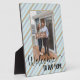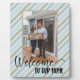 Blue striped "Welcome Home" photo plaque with easel. Add an image to personalise this photo frame. Ideal photo frame for new home owners or renters. Makes a nice photo gift from family, neighbour, realtor, lender, builder, and nicely complements most home decor.