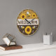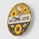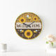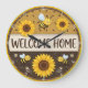 Infuse your living space with a high-energy and cheerful atmosphere with this delightful "Welcome Home" wall clock. The central face features a high-definition graphic of vibrant yellow sunflowers and friendly, smiling bumblebees buzzing against a rustic-style backdrop. The design is split into warm tan and dark chocolate sections, accented with charming polka dots and delicate floral flourishes. While the artwork masterfully mimics the textured look of weathered wood planks and grain, this is a lightweight and durable graphic timepiece rather than actual timber. The clean white numeric markers provide professional contrast against the yellow and brown outer rim, ensuring the time is easy to read at a glance. This timepiece serves as a bright and polished focal point for an entryway, kitchen, or sunroom, making it a perfect self-gift for those who love whimsical nature art.