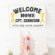 Flanked by yellow, support the troops ribbon graphics you can personalise this "welcome home" vinyl banner with your returning hero's name and branch of service for a personalised and long lasting banner that is perfect for end of deployment celebrations.