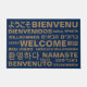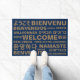 Welcome in many different languages navy blue and faux gold elegant modern typography fun pattern Doormat