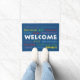 Welcome in Many Languages Blue Background Doormat