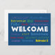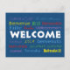 Welcome in Many Languages Blue White Postcard
