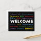 A fun and colourful design that says welcome in many languages like Spanish, Japanese, English, Italian and more!