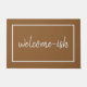 It's funny because it's true. You are welcome-ish. This humourous door mat is for introverts, the anti-social, and the socially awkward, who receive guests with a little reluctance and maybe even some anxiety. Simple, elegant script typography on a taupe, cocomat-coloured background. Unexpected, quirky and just a little bit sarcastic.