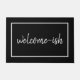 It's funny because it's true. You are welcome-ish. This humourous door mat is for introverts, the anti-social, and the socially awkward, who receive guests with a little reluctance and maybe even some anxiety. Simple, elegant script typography on a classic black background. Unexpected, quirky and just a little bit sarcastic.