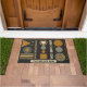 This artistic doormat in modern Bauhaus style combines abstract geometry with a humourous message. The mat is divided into three dynamic sections, interspersed with vertical texts such as “WELCOME-ISH” and “It depends on who you are.” The beige banner at the bottom invites personalisation - add your name or a creative message, like “The Miller Way.”