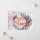 Lovely Light Purple Picture & Script Text Photo Baby Birth Announcement card with white text you can personalize and send out to family and friends to announce the arrival of your new bundle of joy. You can replace the sample photo with your own baby's photo. The white and gray (at the back of the card) text color can be changed using the edit menu. A very light purple color adorns the back of the card. Other colors are available. I offer custom orders to you so that you can spend your time with your family while you have it done! Contact me if you need any help or if you have any questions. @Miri Creations - Created For You Only. Enjoy!