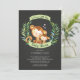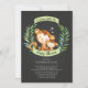 Welcome Little One Monkey Baby Shower Invitation featuring a mum & baby monkey with green jungle leaves a ribbon banners set on a black chalkboard background. Perfect for a girls baby shower, boys shower or gender neutral shower.